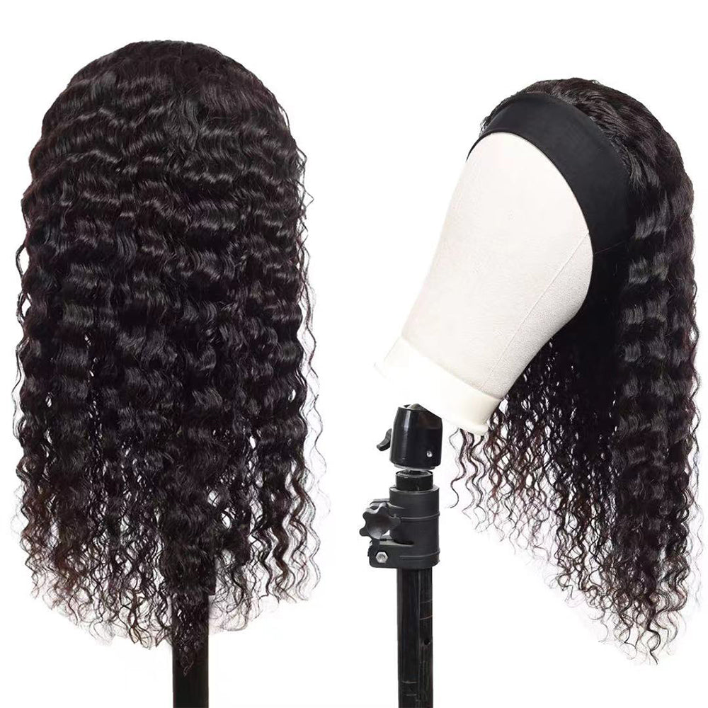 Deep Wave Glueless Headband Wig Natural Black 180% Density