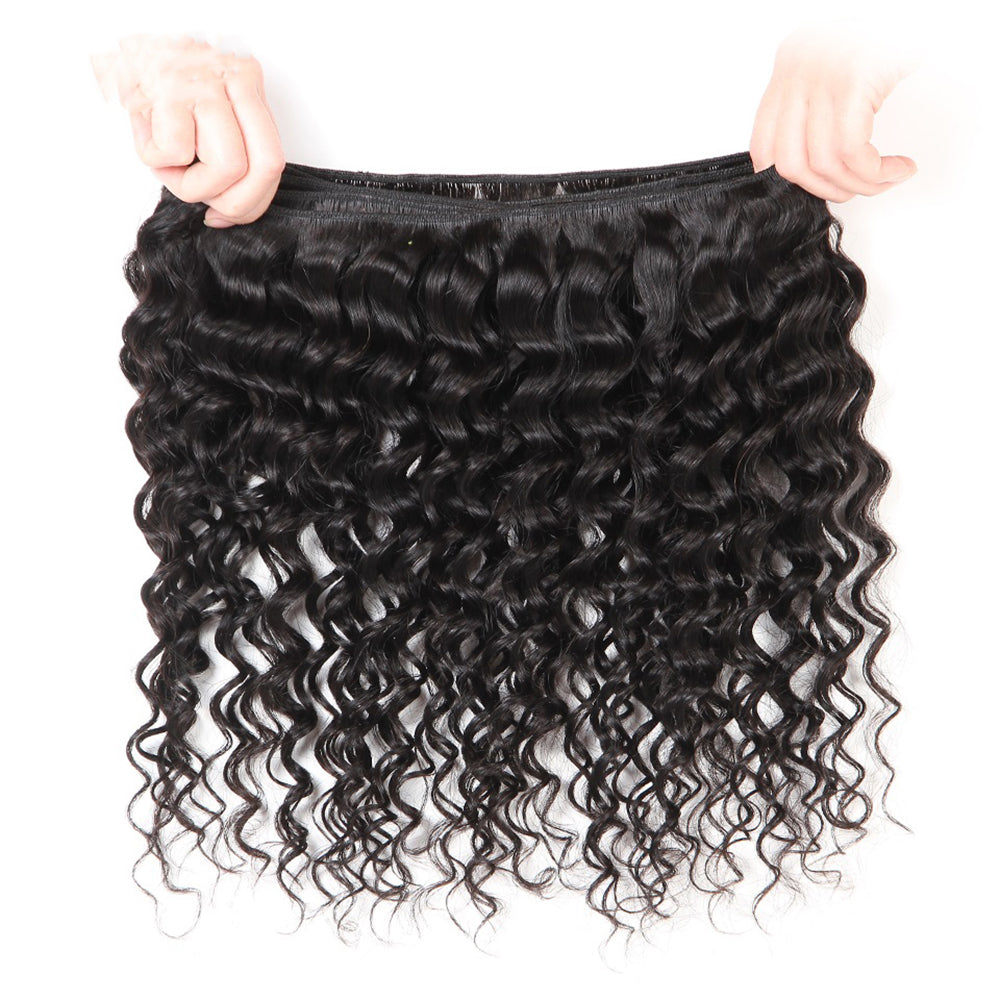 Bundle Deals With Closure Deep Wave Virgin Human Hair Natural Black