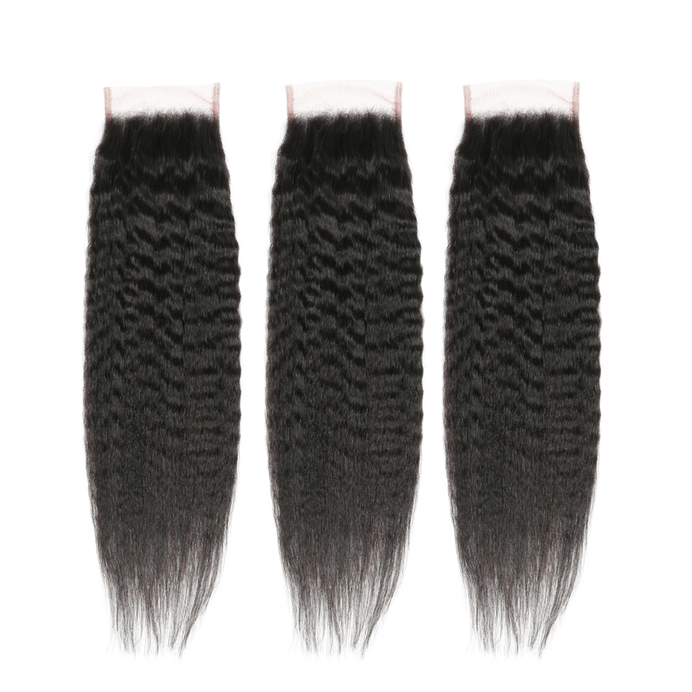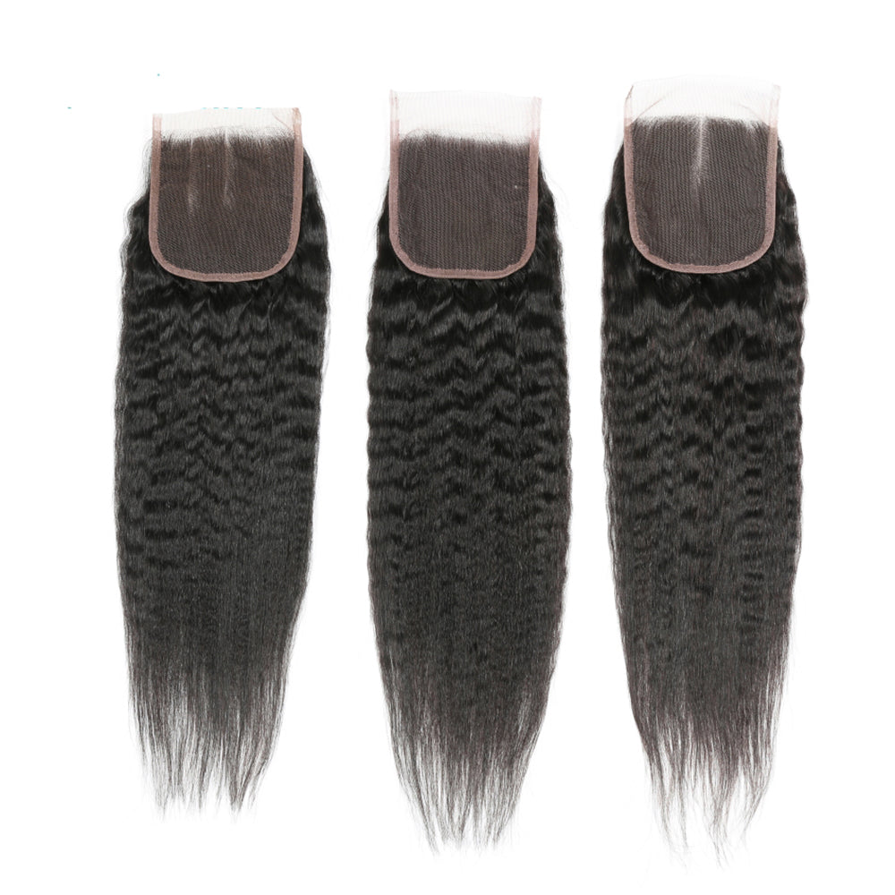 Bundle Deals With Closure Kinky Straight Virgin Human Hair Natural Black