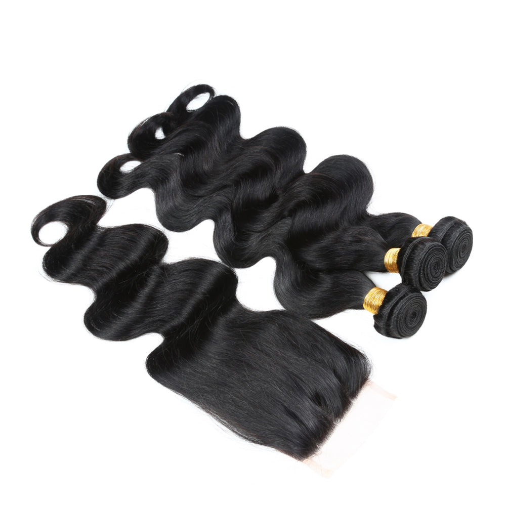 Bundle Deals With Closure Body Wave Virgin Human Hair Natural Black