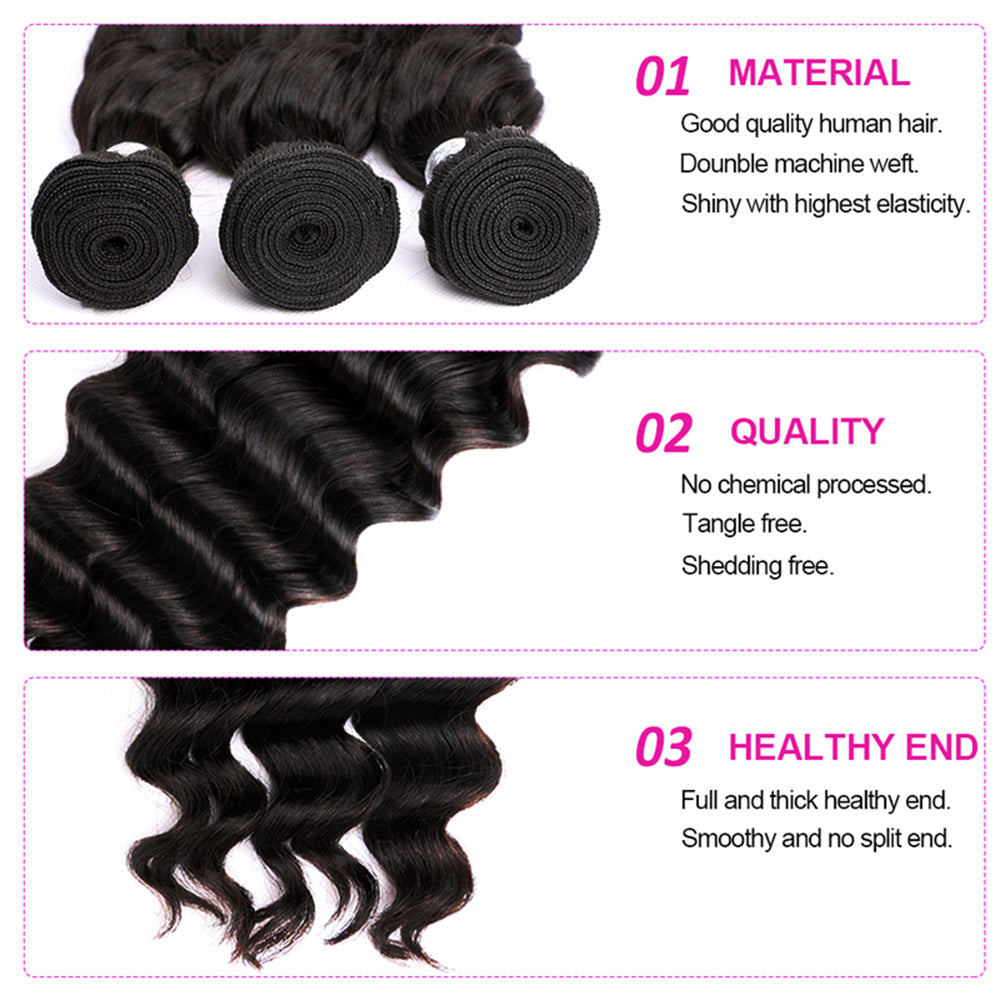 Loose Deep Curly Virgin Human Hair Natural Black Bundles